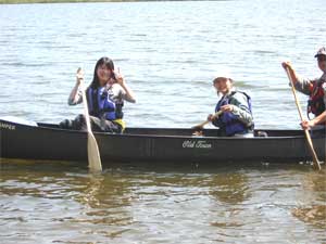 前にお客様、後ろにガイドが乗り、湖へ漕ぎ出します。 はじめはぎこちなかったパドリングも湖を渡るころにはスムーズになり、湖を渡る風もさわやかに感じられるはずです。 |
